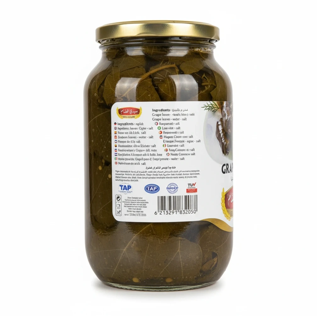 - Premium quality grape leaves carefully preserved in brine