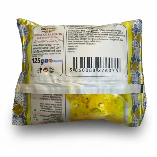 This delightful Persian Saffron Ice Cream Waffle by Anjoman offers a unique fusion of creamy ice cream and delicate saffron flavour, perfectly sandwiched between crispy waffle layers. It brings a touch of traditional Persian dessert joy to your palate with every bite.