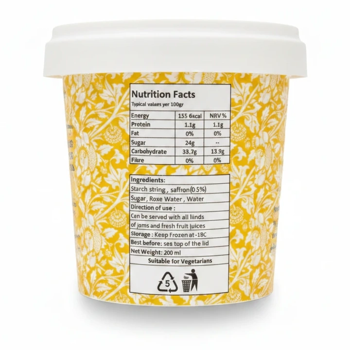 This ready-to-serve frozen dessert blends tradition with convenience, bringing a touch of Shiraz heritage to your home in a vibrant, patterned container that looks as appealing as it tastes.