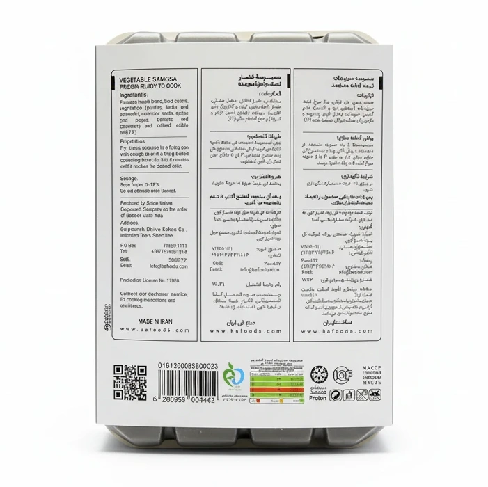 Ba Frozen Vegetable Samosas are a delicious, ready-to-cook treat perfect for any meal or snack. Each samosa features a light, crispy lavash bread packed with a savoury filling of potatoes, fried onions, and fresh vegetables like parsley, leeks, and coriander, seasoned with fragrant spices including red pepper, turmeric, and cinnamon.