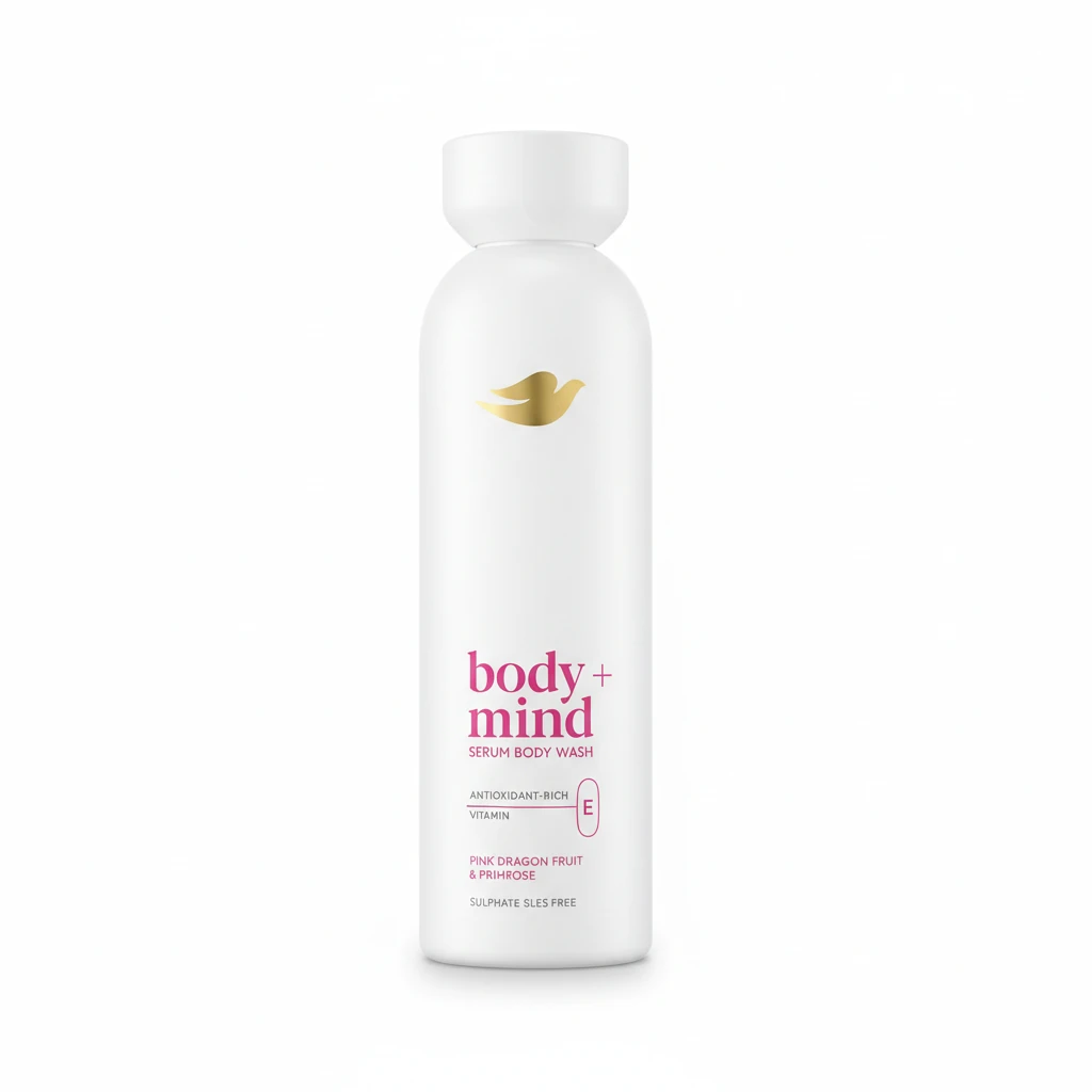 Refresh your daily routine with this Dove Body+Mind Serum Body Wash, infused with antioxidant-rich Vitamin E and the delightful scents of Pink Dragon Fruit and Primrose. Created to nourish and care for your skin, this body wash offers a unique blend that leaves your skin feeling soft, soothed, and vibrantly clean.