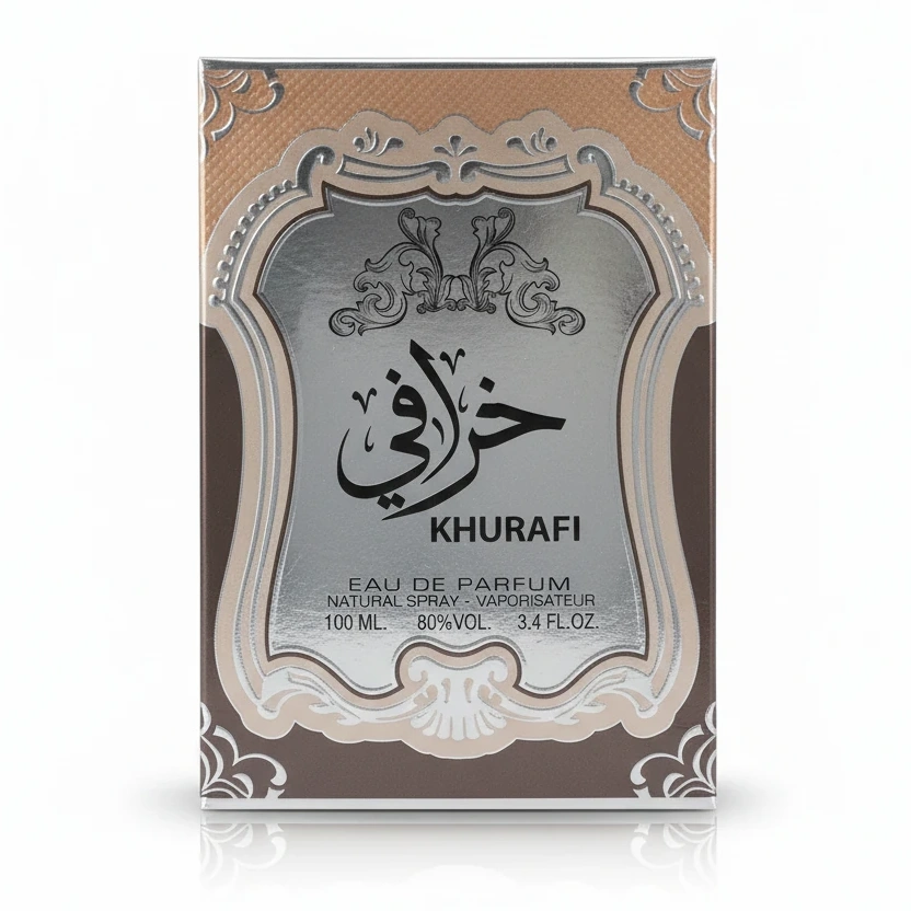 Experience the alluring essence of Lattafa Khurafi Eau de Parfum, a beautifully crafted fragrance designed to captivate and refresh. This 100ml natural spray offers a perfect balance of sophistication and everyday wearability, presented in an elegant and reflective packaging that reflects its premium quality.