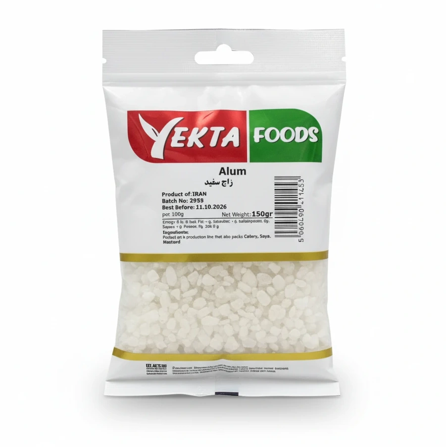 Yekta Foods Alum Crystal is a versatile ingredient perfect for various household and personal uses. Presented in a convenient resealable pack, this product provides a hygienic and long-lasting storage solution.