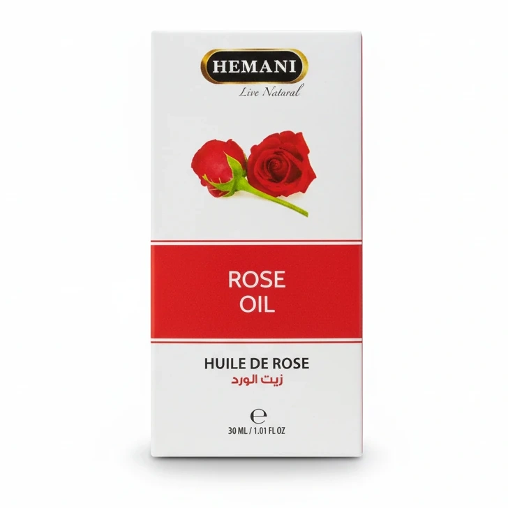 Embrace the natural purity of Hemani Rose Oil, lovingly crafted to capture the delicate essence of fresh roses. This 30 ml bottle contains 100% pure rose oil sourced with care and passion, ensuring a rich, aromatic experience.