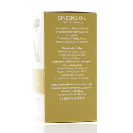 • Hemani provides ginseng oil for skincare, hair care, and oral consumption.