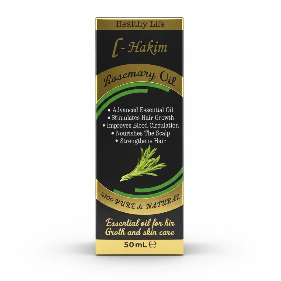 L-Hakim Rosemary Essential Oil is a powerful natural oil designed to stimulate hair growth and improve scalp health. Crafted from 100% pure and natural rosemary oil, it promotes better blood circulation, which strengthens hair roots and nourishes the scalp.