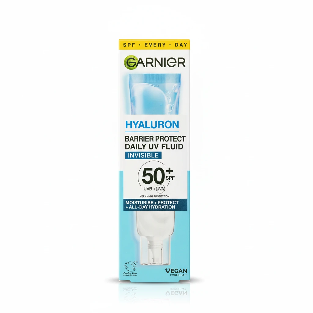 Enjoy very high sun protection with Garnier Hyaluron Barrier Protect Daily UV Fluid. Offering SPF 50+ that shields your skin from harmful UVA and UVB rays, this invisible fluid not only protects but also moisturises your skin for all-day hydration.