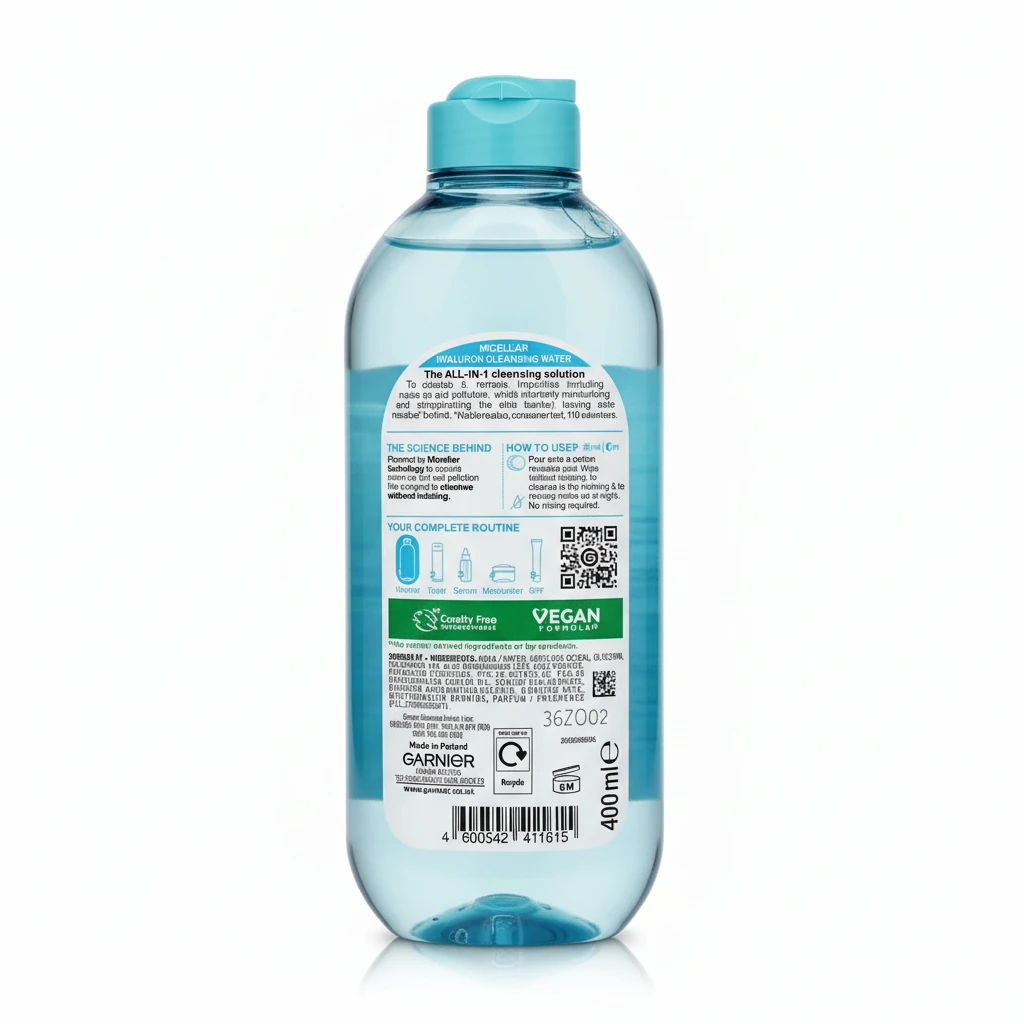 Perfect for sensitive skin, Garnier's Micellar Hyaluron Cleansing Water is hypoallergenic and leaves zero residue, ensuring a clean and refreshed feel every time.