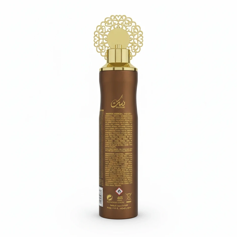 Bring a warm and inviting aroma to your home or office with the Nusuk Amber Wood Air Freshener. This elegant spray features a rich, woody amber fragrance that creates a soothing atmosphere and lifts the mood instantly.