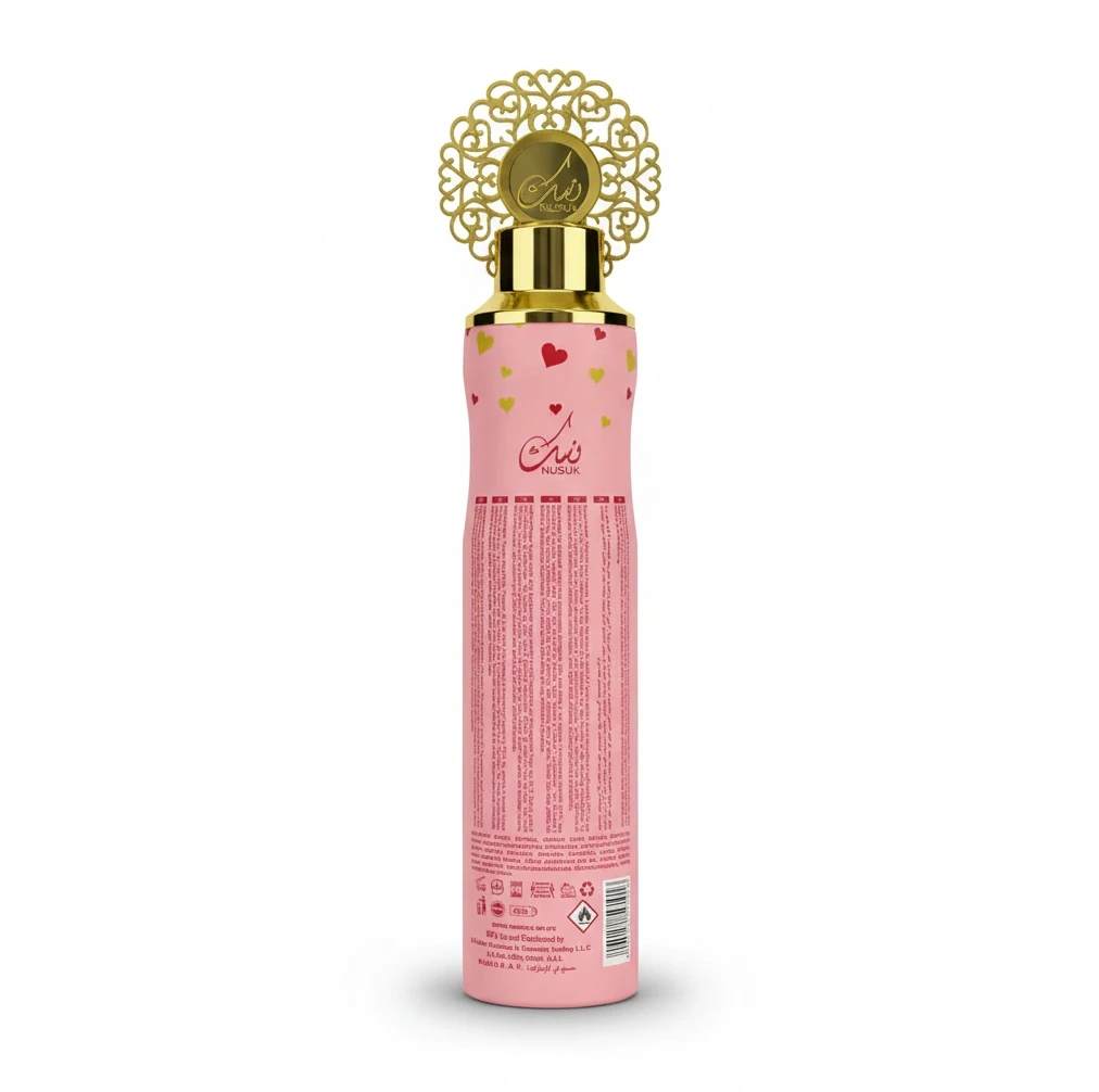 Enjoy a refreshing and long-lasting fragrance experience with Nusuk Saher Air Freshener. Encased in a beautifully designed pink spray can, this 300 ml air freshener brings a delicate, elegant scent to any room.