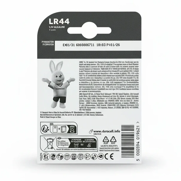 These Duracell LR44 batteries pack reliable power delivered by a trusted brand. Designed as small, round 1.5V alkaline button cells, they're ideal for devices requiring compact, long-lasting energy.