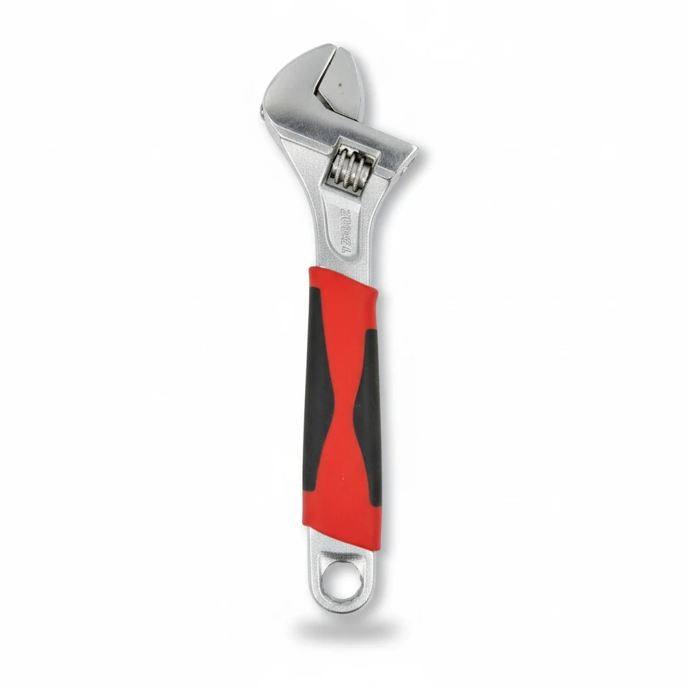 The spanner boasts a sturdy metal construction with a durable chrome finish, ensuring long-lasting performance and resistance to corrosion. Its ergonomic handle is wrapped in a comfortable red and black rubber grip, providing excellent control and reducing hand fatigue during prolonged use.
