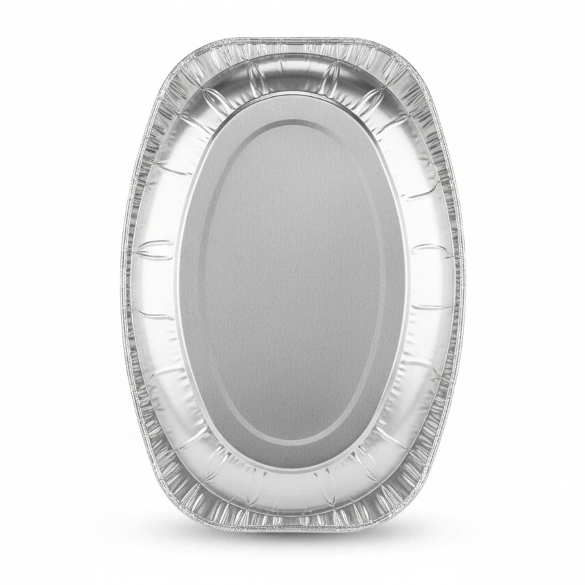 Made from sturdy aluminium foil, these platters provide excellent durability and heat resistance. Use them to present hors d'oeuvres or to prepare easy oven-baked snacks without the hassle of cleaning up afterward.