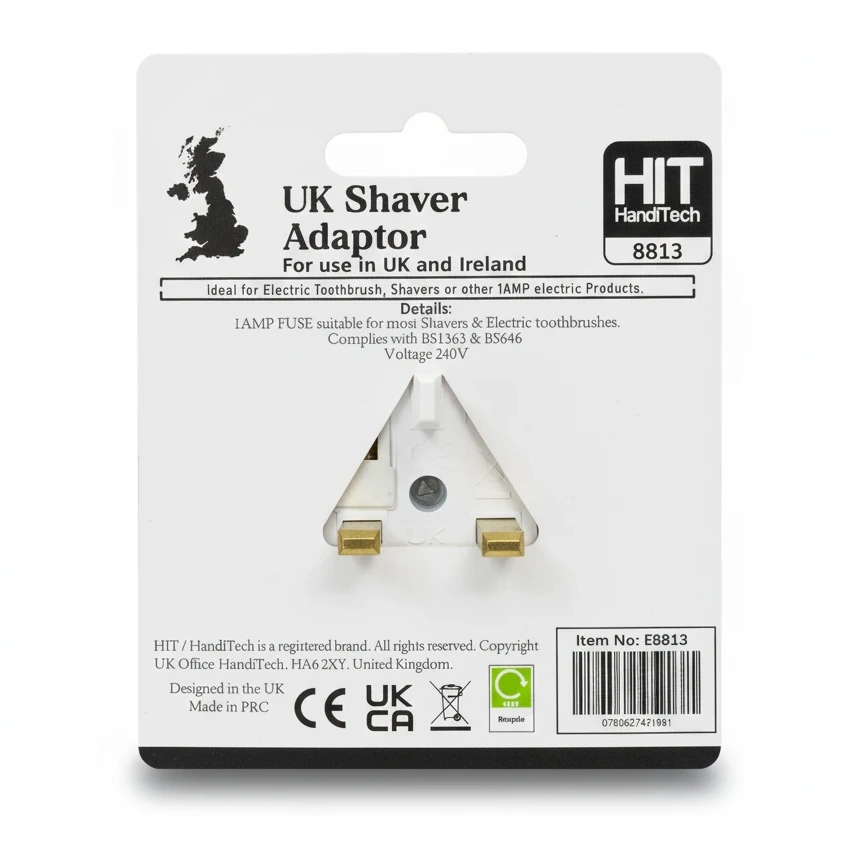 Designed specifically for use in the UK and Ireland, this adaptor is an essential gadget for anyone using electric shavers, toothbrushes, or other 1 AMP electric devices. Its compact design easily converts plugs to fit UK main sockets, complying with BS1363 and BS646 standards for safety and reliability.