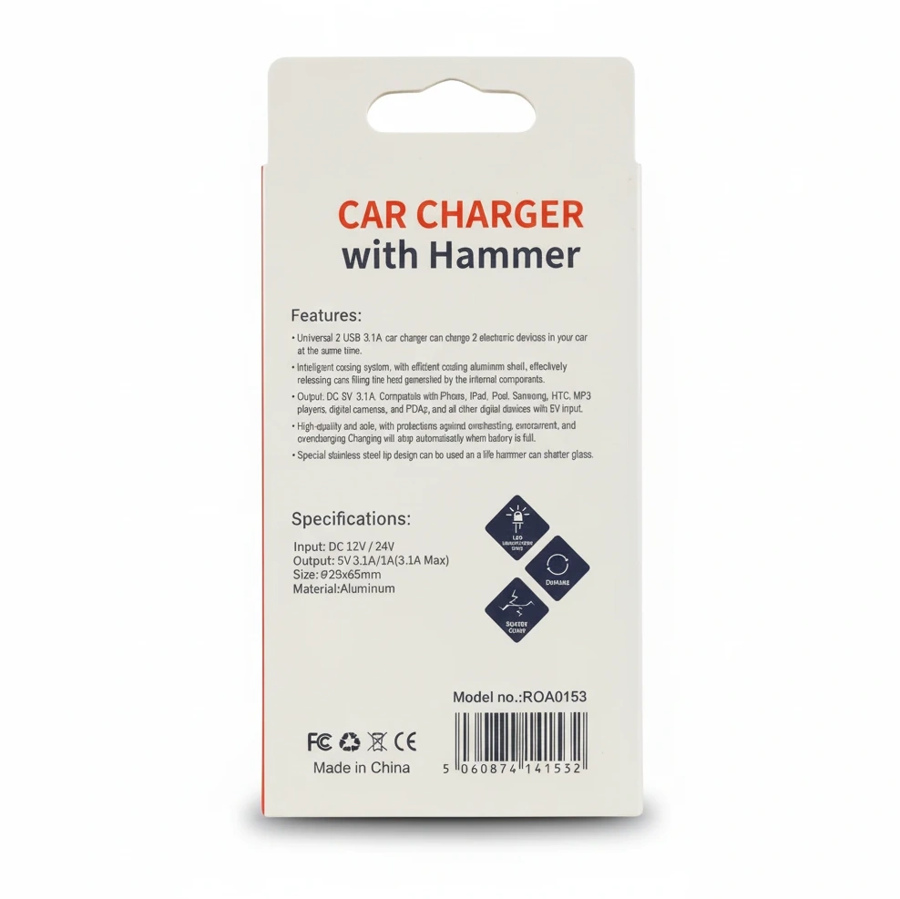 Safety is paramount with built-in protections against overheating, overcurrent, and overcharging, which automatically stops charging when the battery is full. Plus, this charger doubles as a reliable safety tool with a stainless steel tip hammer designed to shatter car windows in emergency situations.