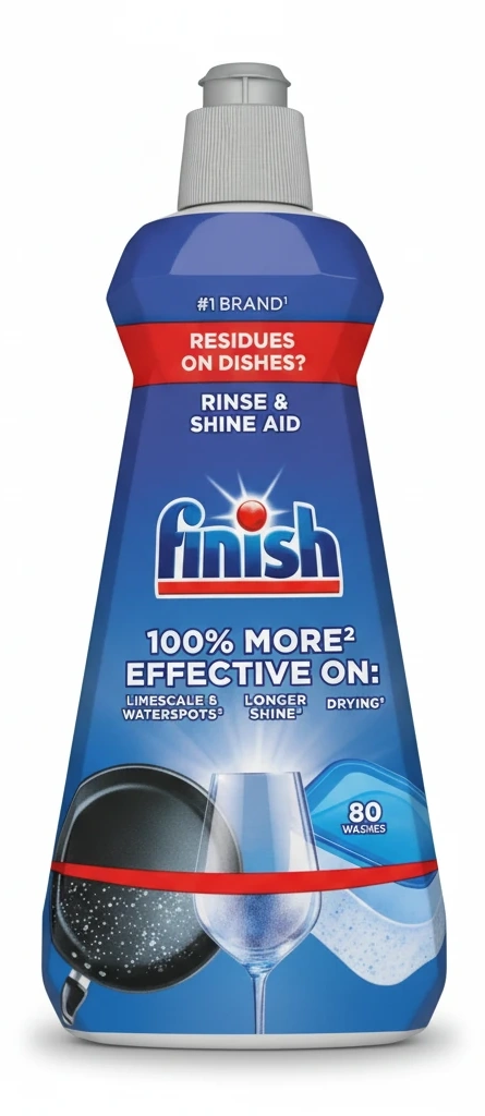 Keep your dishes sparkling clean with the Finish Dishwasher Rinse & Shine Aid, designed to eliminate residues and water spots effortlessly. Ideal for use alongside your dishwasher detergent, this formula ensures your glassware and cookware come out shiny and spotless every time.