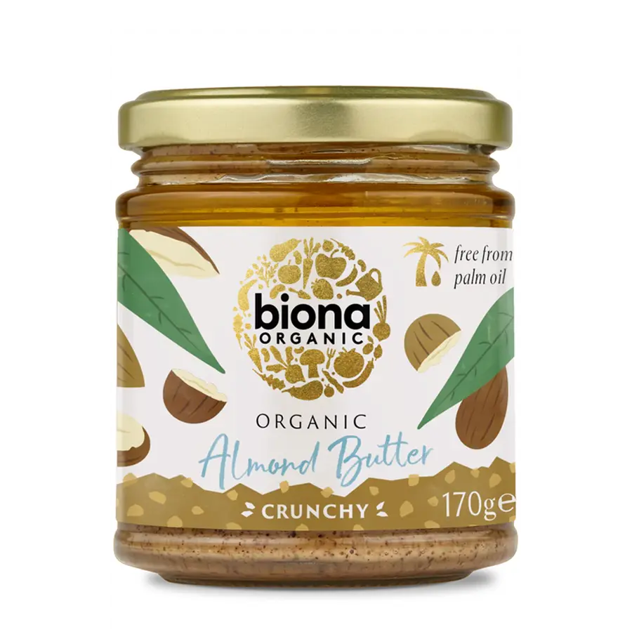 Biona Organic Crunchy Almond Butter is freshly roasted with crushed pieces of almonds for a deliciously crunchy texture. Almonds are high in fibre, protein, heart-healthy mono-unsaturated fats and a great source of zinc and magnesium. Enjoy as a spread on bread, in smoothies or as an ingredient in cooking to add a rich almond flavour. Palm fat free.