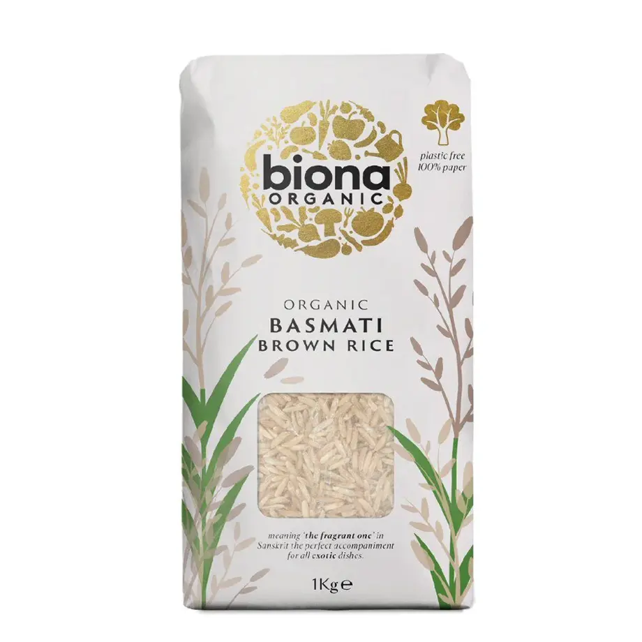 Now in 100% plastic-free paper bags that can be easily recycled. Robust and nutty in flavour, Biona Organic Basmati Brown Rice is made from only the finest organic grains. Naturally gluten-free and high in fibre, it is the perfect accompaniment to a range of different dishes. Available in a convenient 1kg bag, Biona Brown Rice is ideal to keep in your store cupboard all year round.