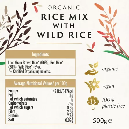 - Long Grain Brown Rice* (66%), Red Rice* (28%), Wild Rice*(6%)