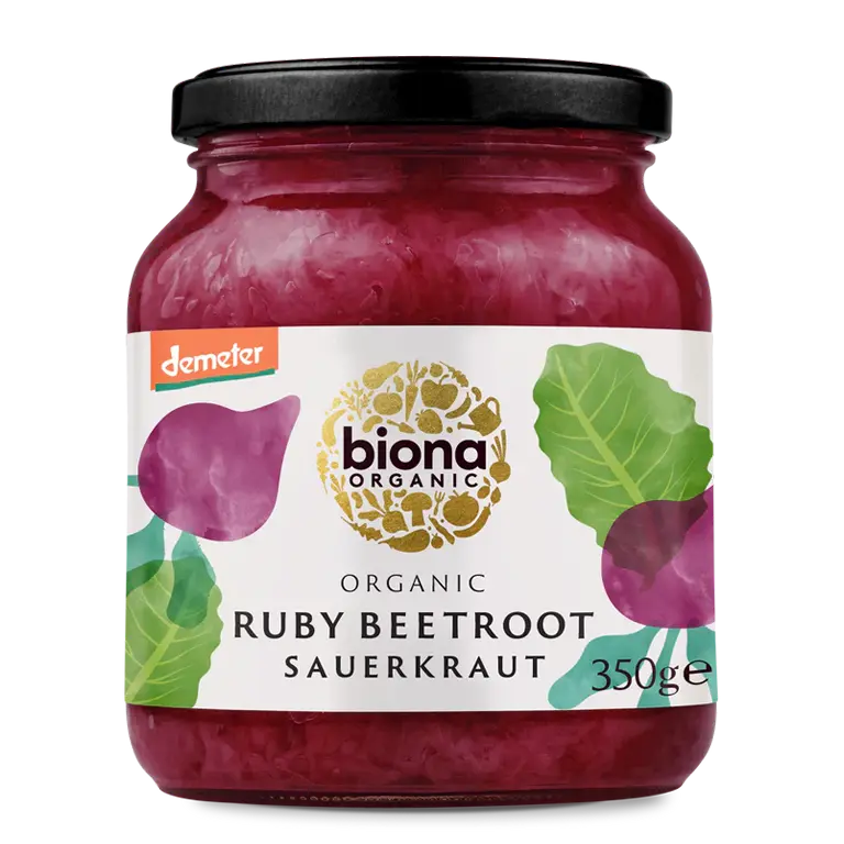 Biona Organic Ruby Sauerkraut is made by combining carefully shredded cabbage and beetroot. This Sauerkraut will liven up all your favourite meals - pair with salads, hummus wraps, veggie burgers, grilled vegetables and more.