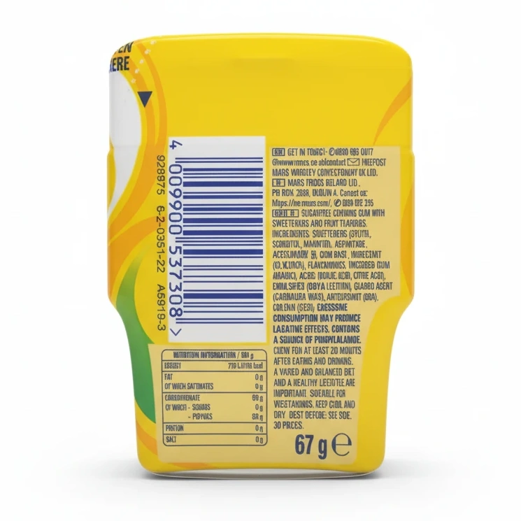 The gum is sweetened with a blend of sugar substitutes including xylitol and sorbitol, providing a pleasant chew without any added sugars. It’s a suitable option for vegetarians looking for a tasty gum alternative.