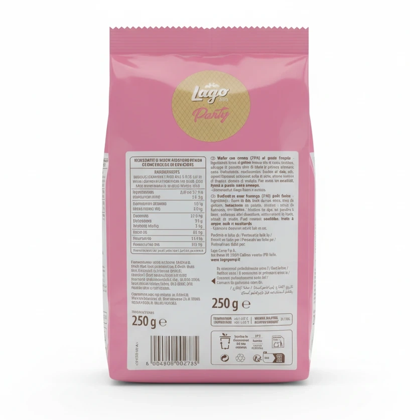 Enjoy the delightful crunch and sweet strawberry cream filling of Lago Party Strawberry Flavour Wafer. These classic Italian wafers bring a perfect balance of crispy wafer layers combined with luscious strawberry flavoured cream in between.