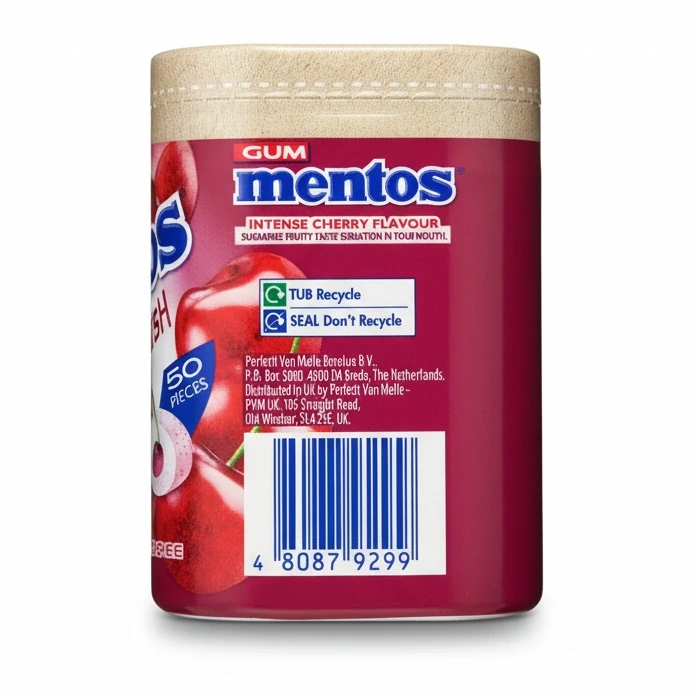 Experience a burst of intense cherry flavour with Mentos Pure Fresh Cherry Gum. This sugarfree chewing gum delivers a refreshing fruity taste sensation that leaves your breath feeling fresh and your mouth feeling vibrant.