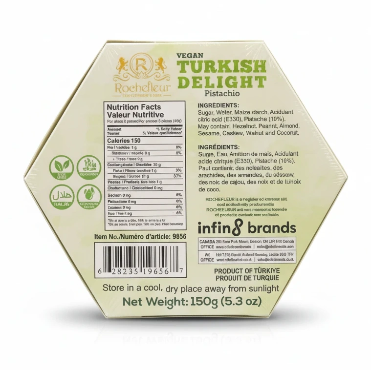 Enjoy the authentic taste of Turkey with this vegan Turkish Delight by Rochefleur. Made with a delightful pistachio flavour, this sweet treat is perfect as a snack or gift. The product boasts a natural recipe with no artificial colours, ensuring you get a wholesome experience every time.