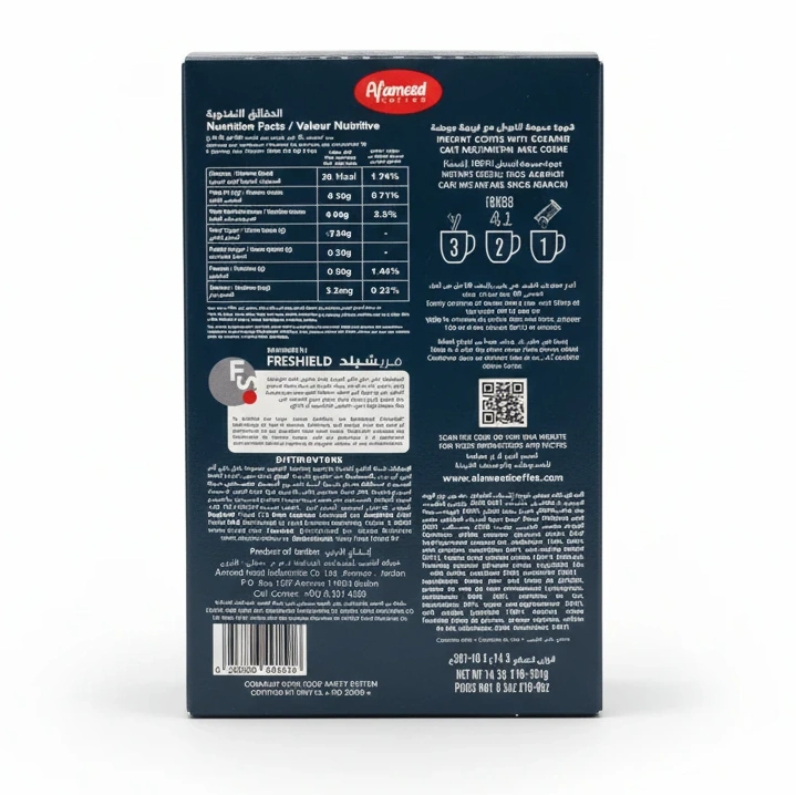 Produced in Jordan with Freshield technology, this coffee is crafted under controlled conditions, preserving freshness, aroma, and quality without any exposure to oxygen or contaminants.