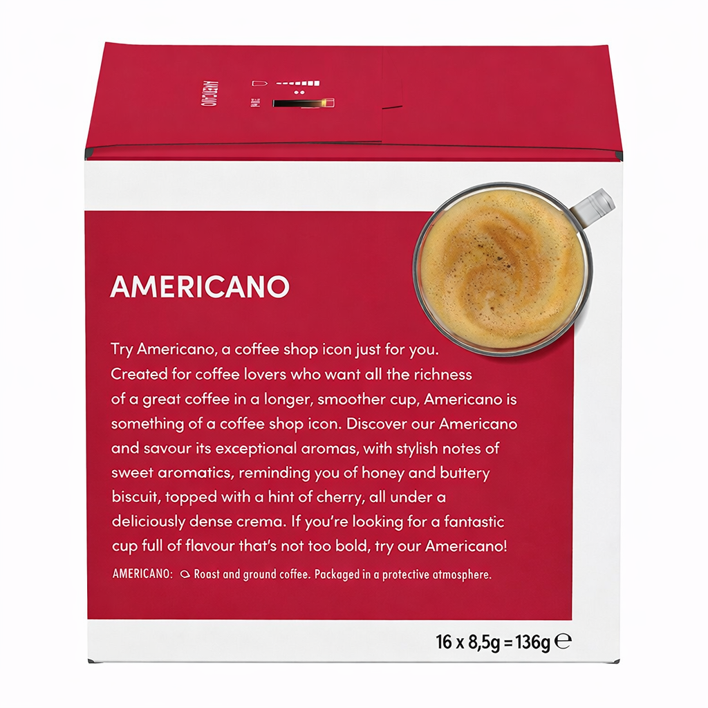 • Compatible with Dolce Gusto machines, it's perfect for coffee lovers who enjoy a rich yet smooth Americano.