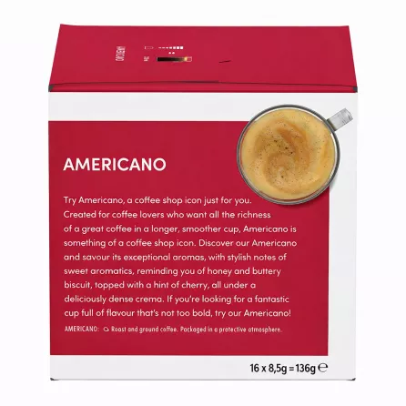 Rich and smooth Americano coffee pods with medium intensity and ethical sourcing.