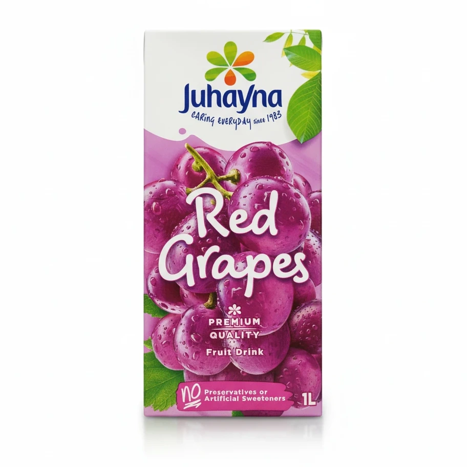 Enjoy the refreshing taste of Juhayna's Red Grapes Fruit Drink, a premium quality beverage made from concentrated red grapes juice. This delightful fruit drink offers a natural sweetness with no preservatives or artificial sweeteners, perfect for a healthy and tasty refreshment.
