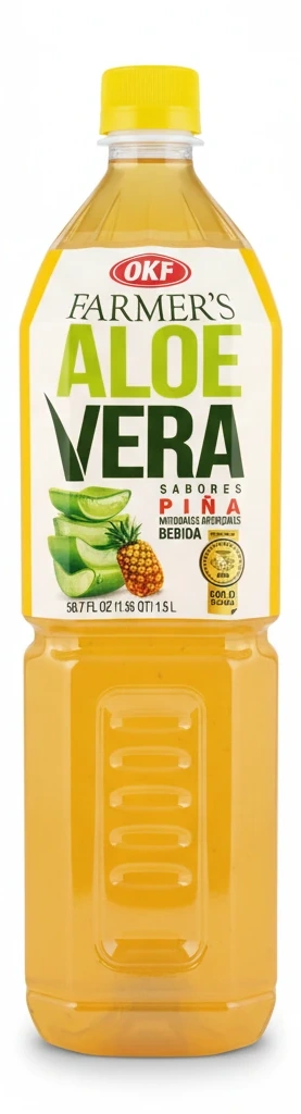 Enjoy the refreshing taste of OKF Farmer's Aloe Vera Pineapple Drink, a delightful blend of aloe vera and pineapple flavours. This 1.5L bottle offers a naturally and artificially flavoured drink that is perfect for cooling off any time of the day.