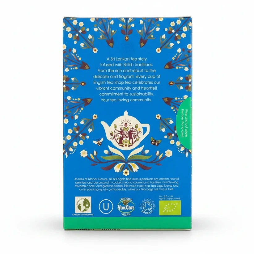 This tea is carbon neutral, packed in fully compostable packaging with staple-free tea bags, contributing towards a greener planet. It is certified vegan and organic, ensuring a clean, responsible choice in your daily tea ritual.