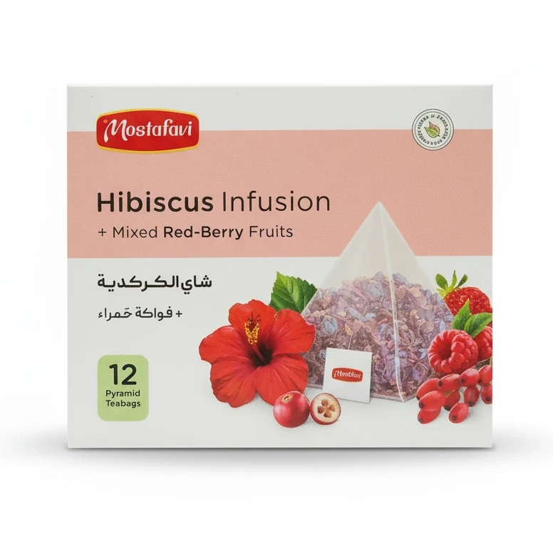 - Blended with hibiscus and mixed red-berry fruits