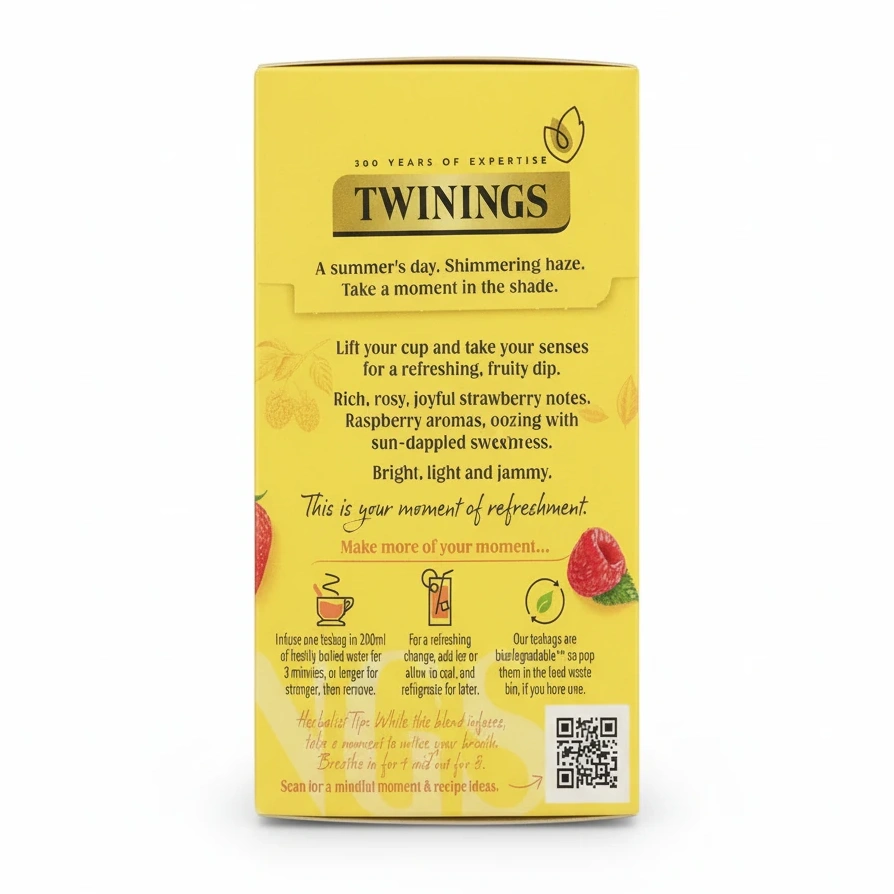 This delicious Twinings Strawberry & Raspberry Tea offers a naturally caffeine-free, fruity infusion perfect for a refreshing moment anytime. Crafted by expert herbalists blending rich strawberry notes with the bright, rosy essence of raspberry, it creates a refreshing and jammy flavour that is both light and inviting.