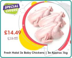 Browse all the current hot offers from trusted sellers on Halalo.co.uk. Find discounted halal groceries, fresh meat, frozen foods, bakery, dairy, drinks, and cultural items from multiple verified vendors.
