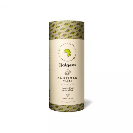 Experience the rich and inviting flavours of Balqees Zanzibar Chai, a beautifully crafted black tea blend inspired by the exotic spices of Zanzibar and Tanga. This Halal-certified chai combines rolled black tea leaves with warming cinnamon bark, fresh ginger, aromatic cardamom seeds, and cloves to create a deliciously fragrant and authentic brew.